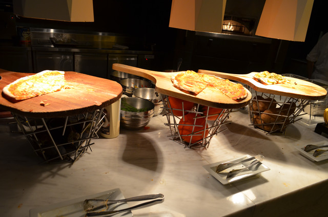 探索廚房比較特別的是有現烤Pizza區. 現做的手工Pizza滿好吃的. 一次有三種口味, 我吃了墨西哥辣椒燻雞與海鮮口味的Pizza. 都很美味.