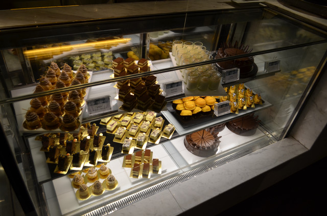 再來是我最喜歡的甜點區. 除了櫥窗裡的甜點外, 還有現煎的可麗餅. 甜點都是放在櫥窗裡, 要吃什麼跟甜點師傅說, 他就會幫客人夾.