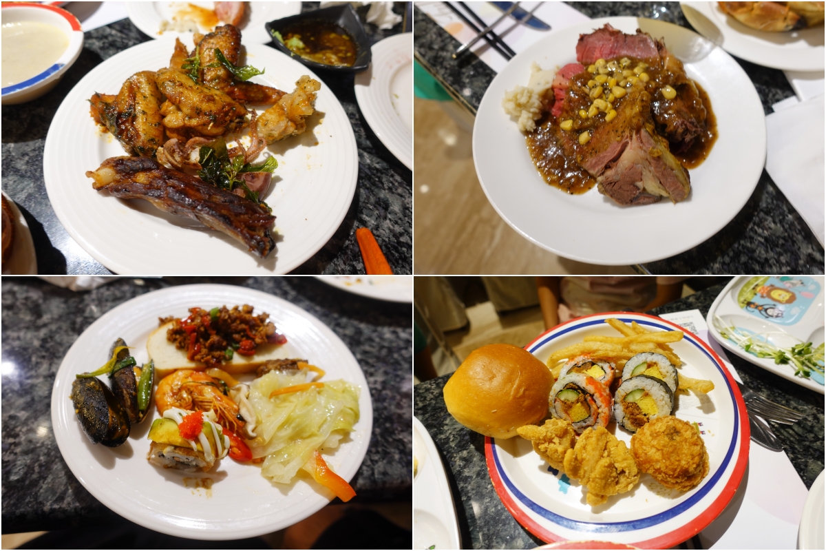 晚餐直接就在福容大飯店 淡水漁人碼頭裡用餐! 飯店裡有幾家餐廳,小涵以前吃過阿基師觀海茶樓,是淡水好吃的飲茶餐廳,很推。但這次帶小朋友來,直接選擇在2樓的田園西餐廳吃自助餐,大小朋友自己選擇自己喜歡吃的東西。住房時飯店也有提供田園西餐廳晚餐$200元現金抵用券2張。