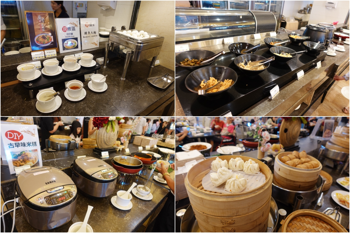 現煮區有蘭芳花椒麵、鮪魚大麵、切仔麵,白粥、古早味米糕、蒸小饅頭、叉燒包。