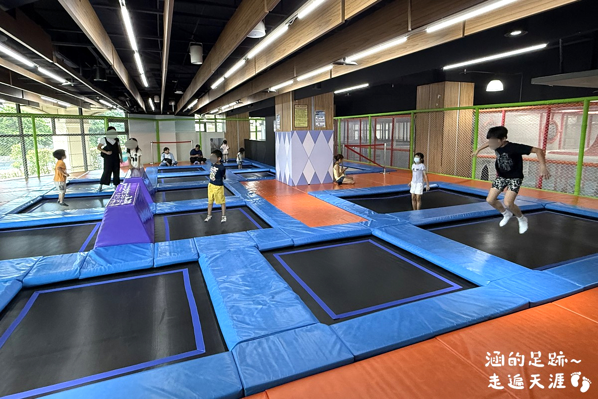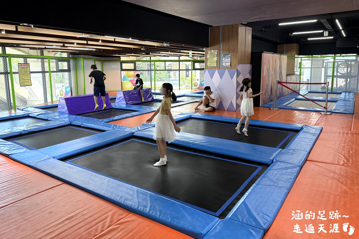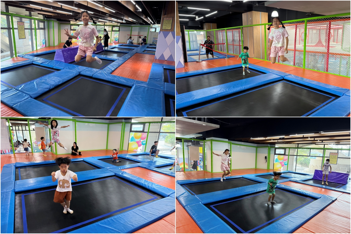POPA親子體能館有超大的彈跳床區,這是小涵看過有最多彈跳床的兒童遊樂區。