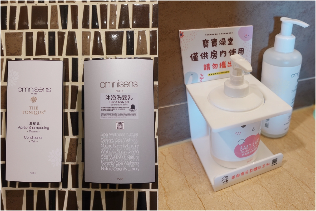 沐浴洗髮乳、潤髮乳是來自法國的SPA沙龍水療品牌Omnisens Paris。