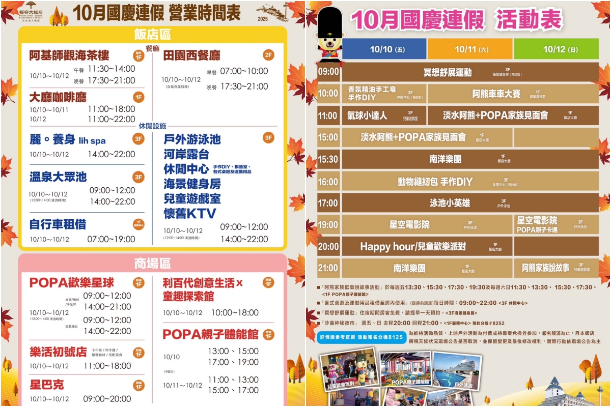 每次到淡水漁人碼頭玩時,小涵總是會被彷彿郵輪的「福容大飯店 淡水漁人碼頭 」所吸引,一直想著有一天一定要來住看看。今年的國慶連假,小涵圓夢了,帶著姪子姪女一起度過兩天一夜的美好假期。福容大飯店 淡水漁人碼頭可說是超乎小涵預期的好玩,除了坐擁無敵山海美景外,竟然是超強親子飯店,這裡設施很多,有超大的POPA親子體能館,可以讓小朋友盡情跑跳,還有POPA歡樂星球、游泳池、健身房,大人最愛的溫泉大眾池。活動也好多,有可愛的淡水阿熊見面會、星空電影院、很精彩的兒童歡樂派對、手作DIY、阿熊車車大賽,從入住到退房活動滿滿,小朋友玩到都不想離開了! 快跟著小涵來認識超棒的福容大飯店淡水漁人碼頭吧!