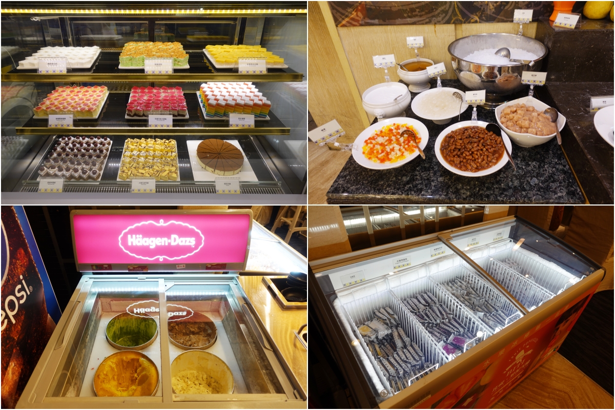 甜點也很豐富,有多種蛋糕、摸摸喳喳、哈根達斯冰淇淋、莫凡提冰淇淋、水果冰棒。