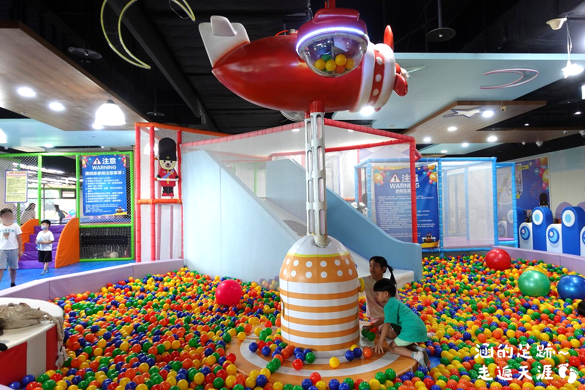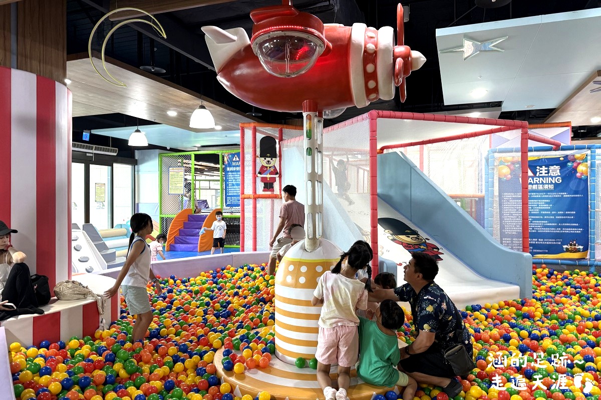 這裡的彩色球池很好玩,還有這個把球吸進去的飛機,一按球就會全部掉落。
