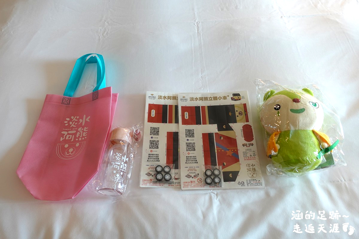 有可愛的POPA家族的DADA玩偶、水壺、淡水阿熊立體小車,小朋友馬上說晚上要和DADA一起睡。