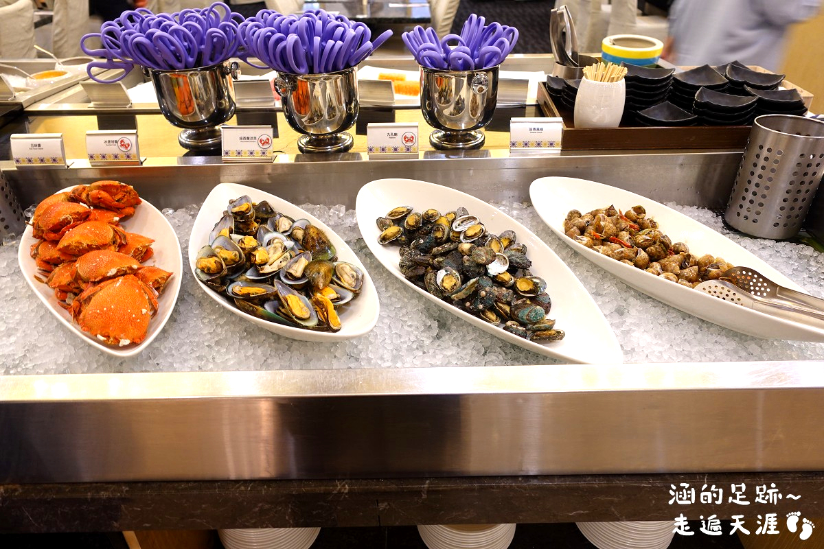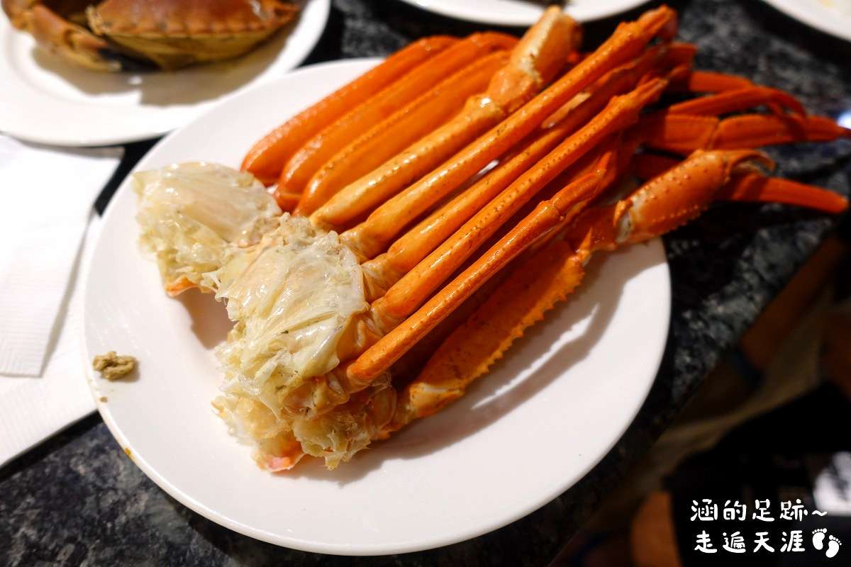 海鮮有松葉蟹腳、麵包蟹、旭蟹、白蝦、淡菜、九孔鮑、鳳螺。
