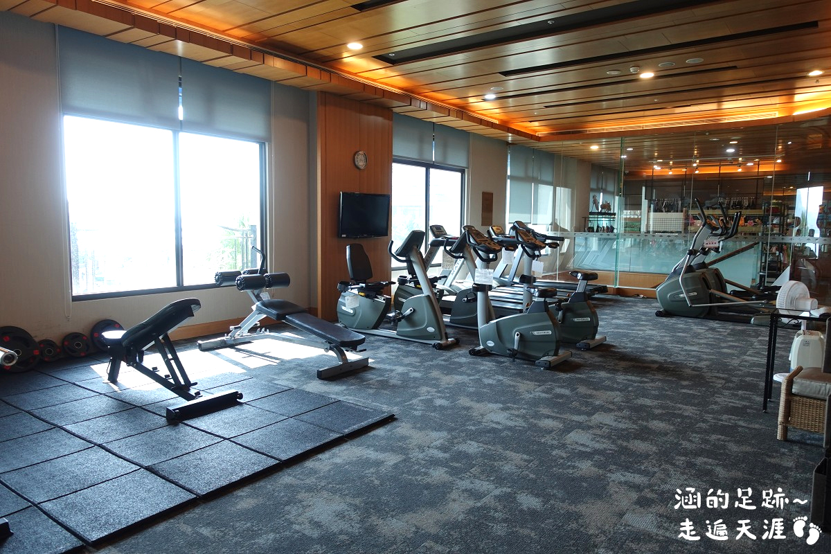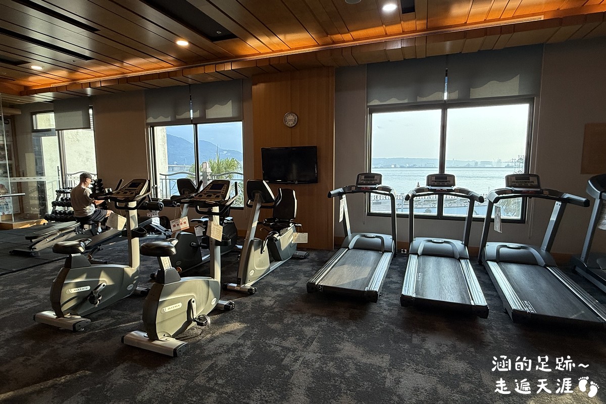 正對淡水河觀音山的海景健身房,可以邊運動邊欣賞窗外的山河景緻。