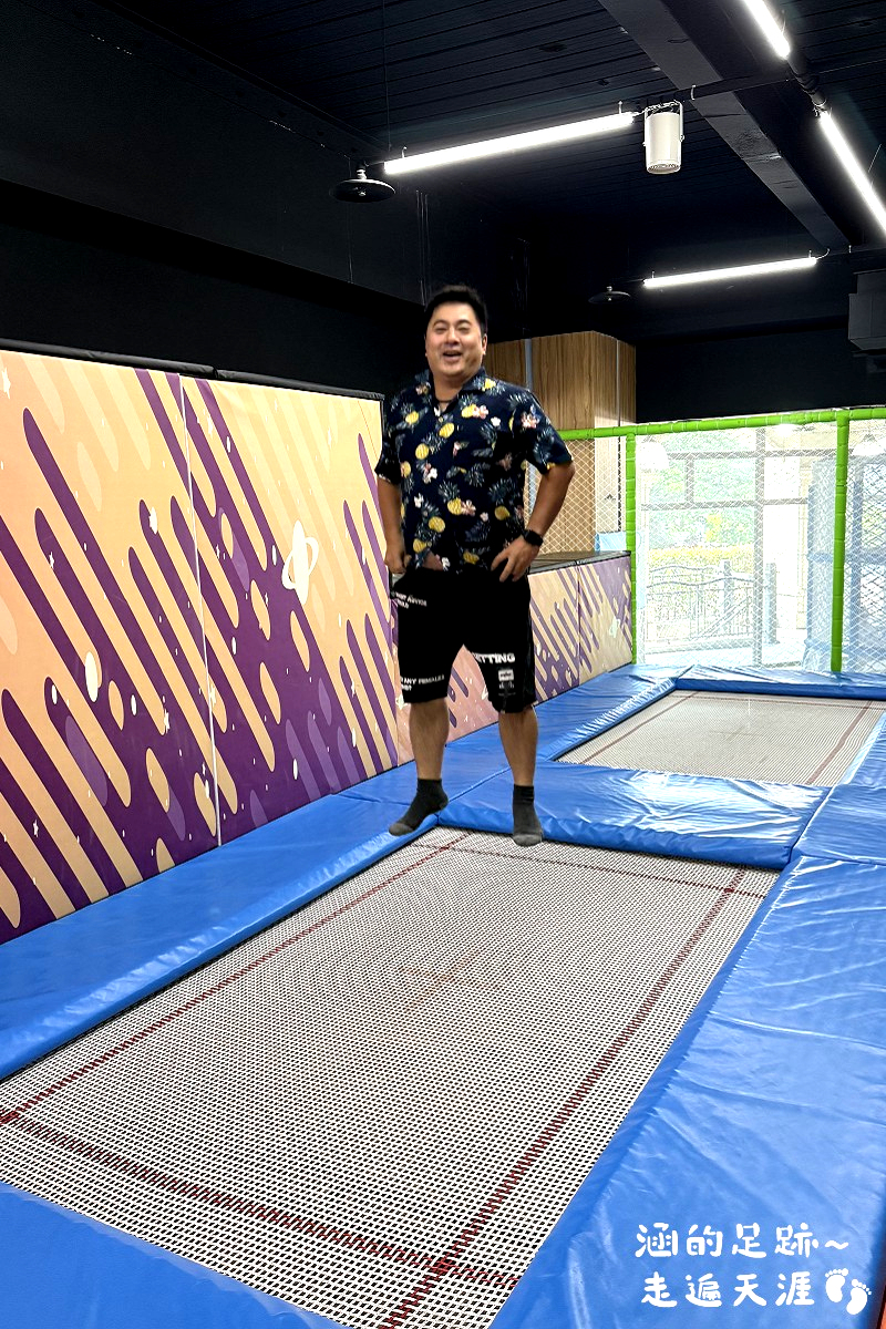 POPA親子體能館太貼心了,在彈跳床區還有設置兩個大人的彈跳床,讓大人也能一起同樂。