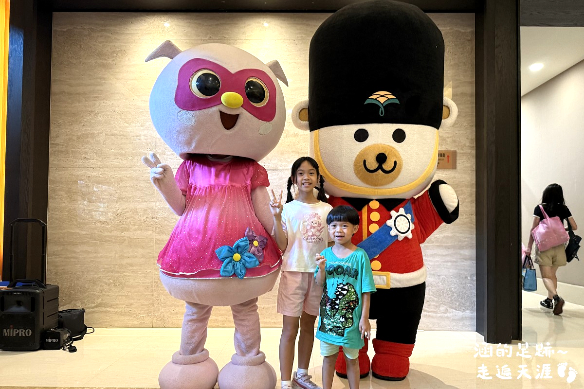 我們很幸運,隔天11點退房時也有一場淡水阿熊、POPA家族見面會,這天出場的是淡水阿熊和POPA家族的DUMA。