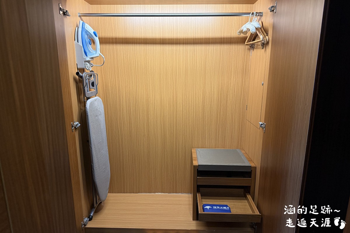 房間的衣櫃很大,有不織布袋和拖鞋。不織布袋很好用,游泳時可以裝泳衣。