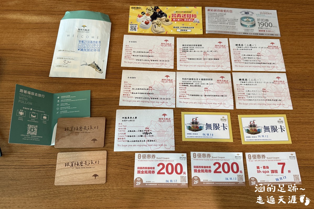 在check in時會拿到訂房方案的體驗券、折價券、優惠券。