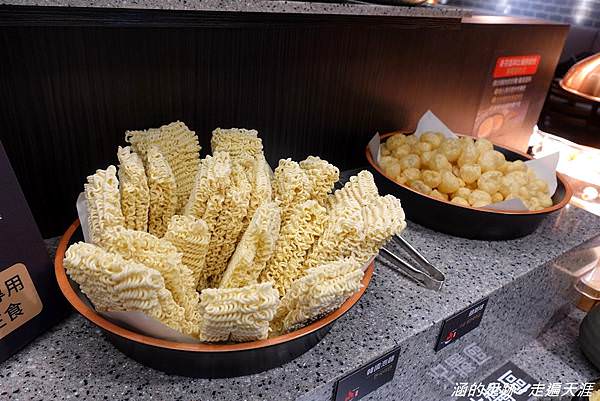 銅盤上已經有放上一些青菜,服務人員幫我們開火,在銅盤四周加湯,之後就可以去自助區取餐囉!