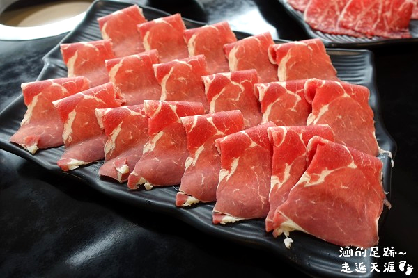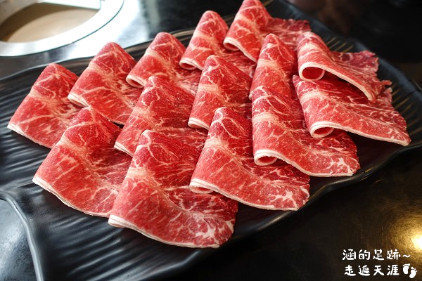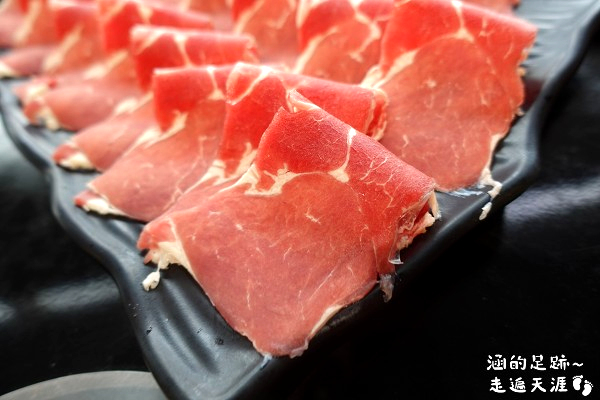 這還是小涵第一次在火鍋店看到是用手切的松阪豬,每一片切的大小和厚薄度都差不多,刀工不錯。