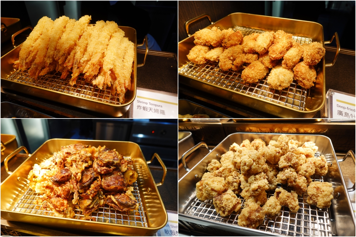 有炸蝦天婦羅、廣島牡蠣、軟殼蟹、唐揚炸雞、天婦羅時蔬