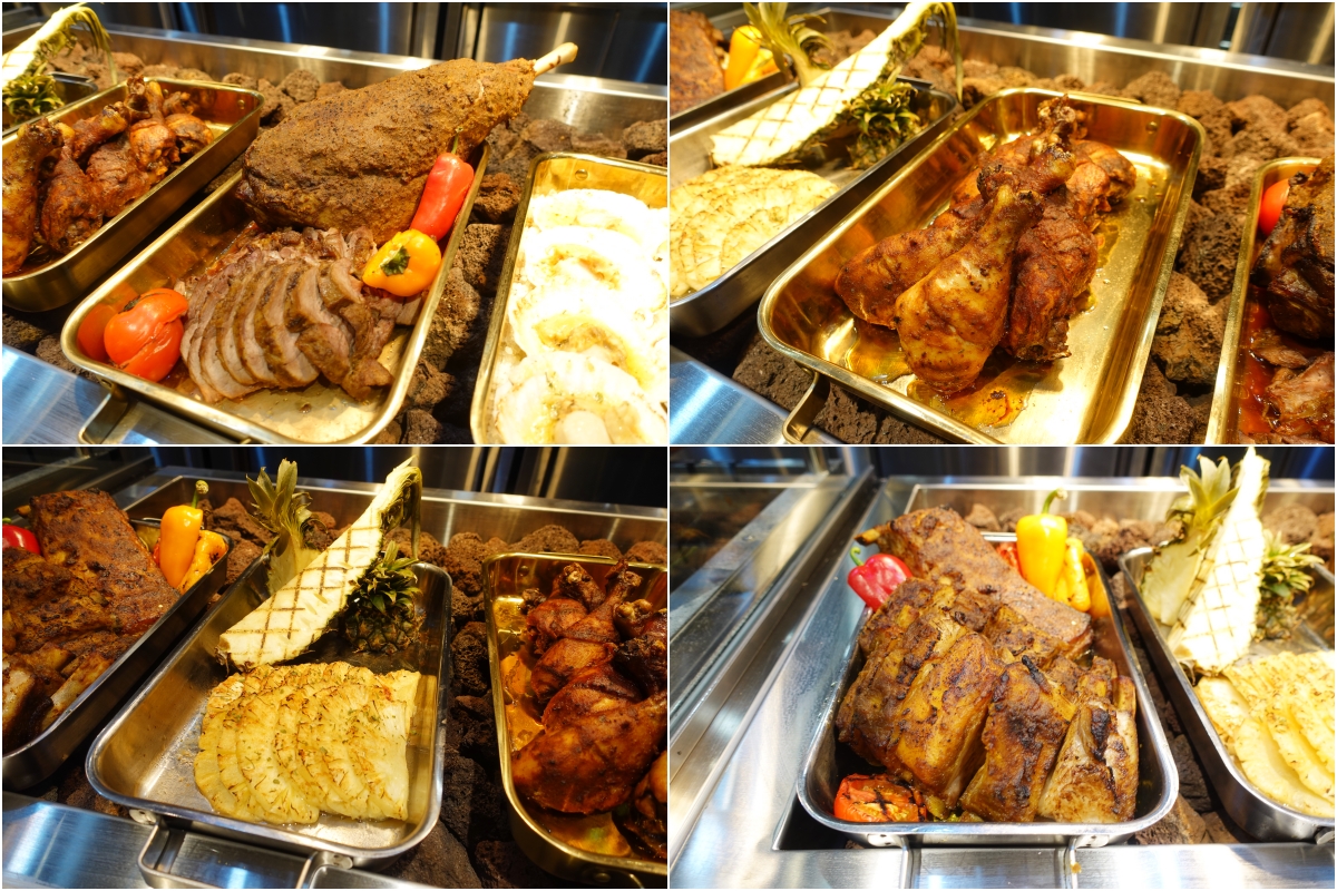 馬沙拉烤羊腿、肯瓊香料烤雞腿、肉桂烤鳳梨、泰式豬肋排