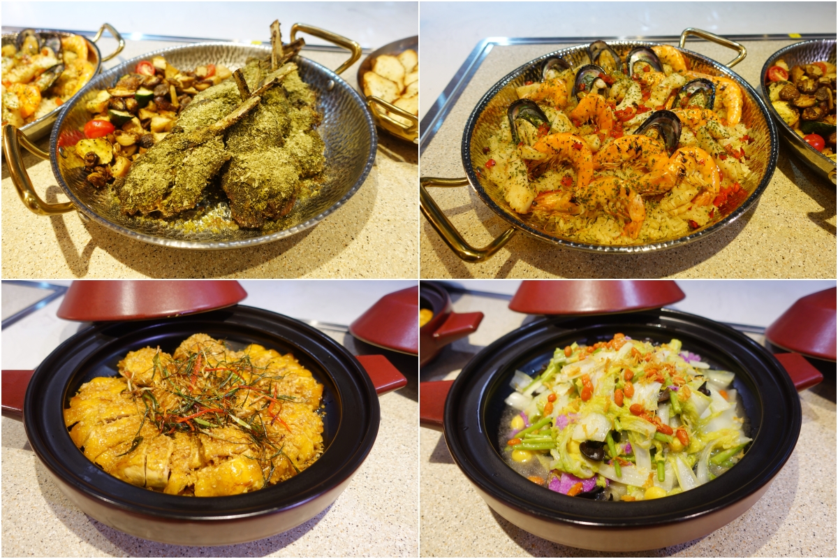 普羅旺斯烤羊排、菲律賓蒜香海鮮烤飯、脆皮雞、銀杏五彩時令蔬
