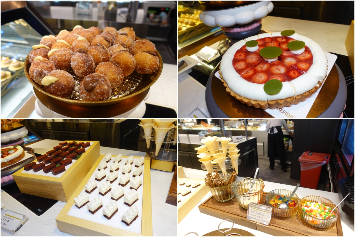 蛋糕櫃裡是玲瑯滿目的精緻甜點,每種都想吃喔!