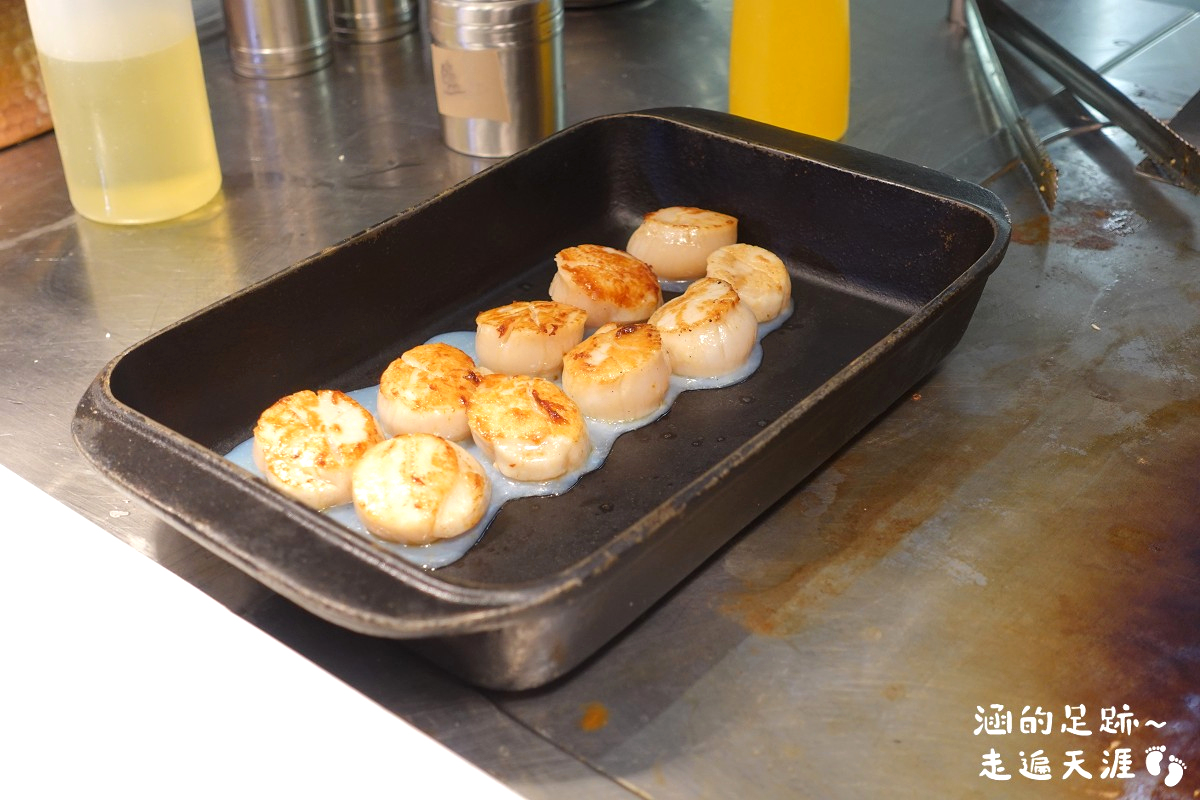 鐵板區三種料理都好吃,大顆現煎奶油干貝超美味,煎到半生熟,中間好嫩。