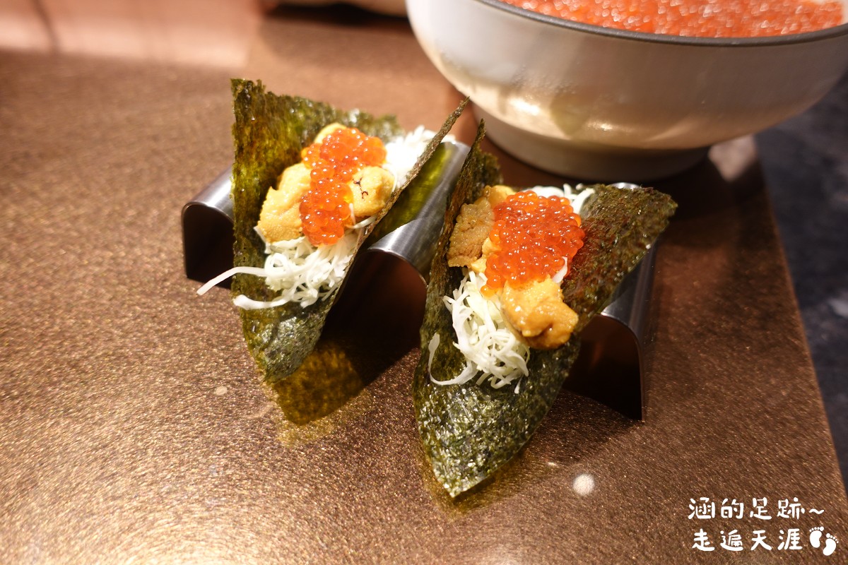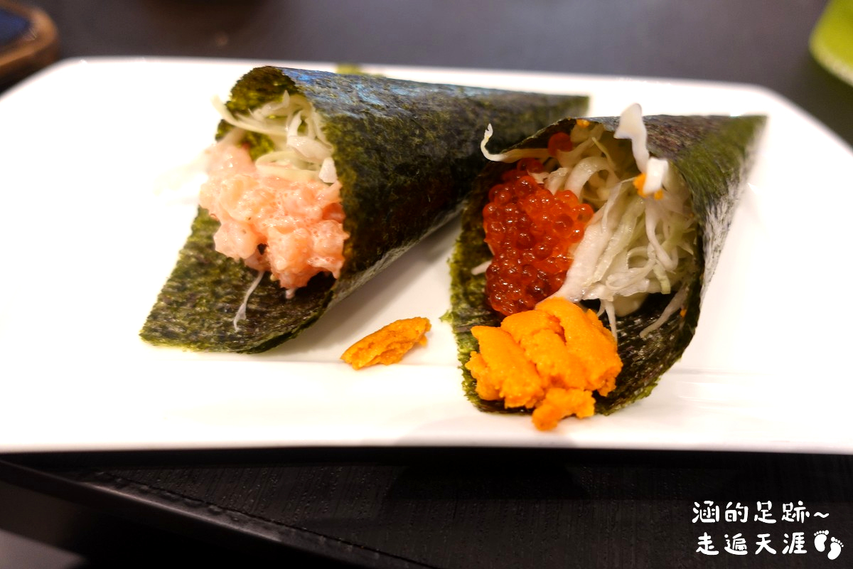 小涵建議可以假日來用餐,看看假日限定的海膽鮭魚手卵手卷,海膽給的不手軟。