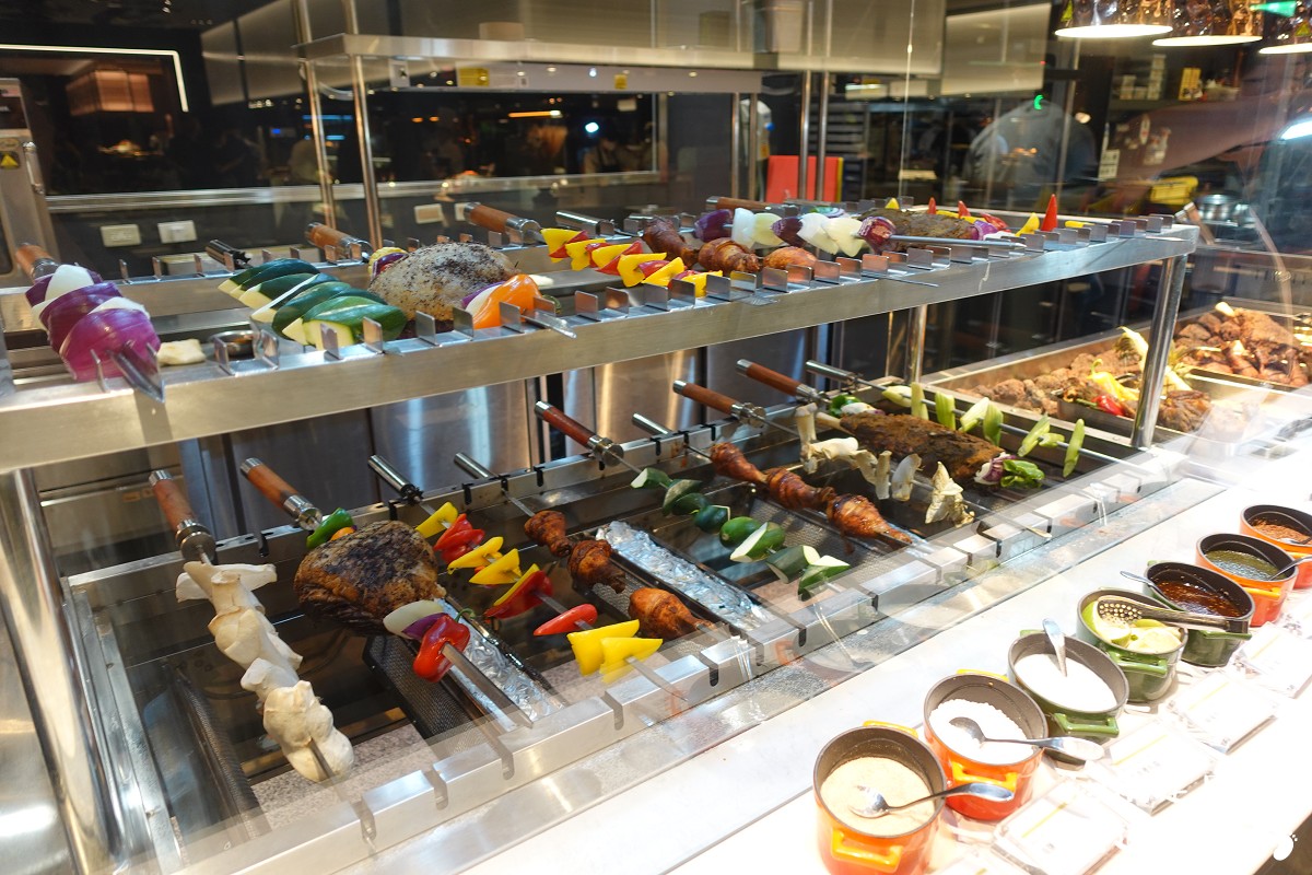 開放式的廚房可以看到和牛臀上蓋、肉類以及各式時蔬在旋轉慢烤。