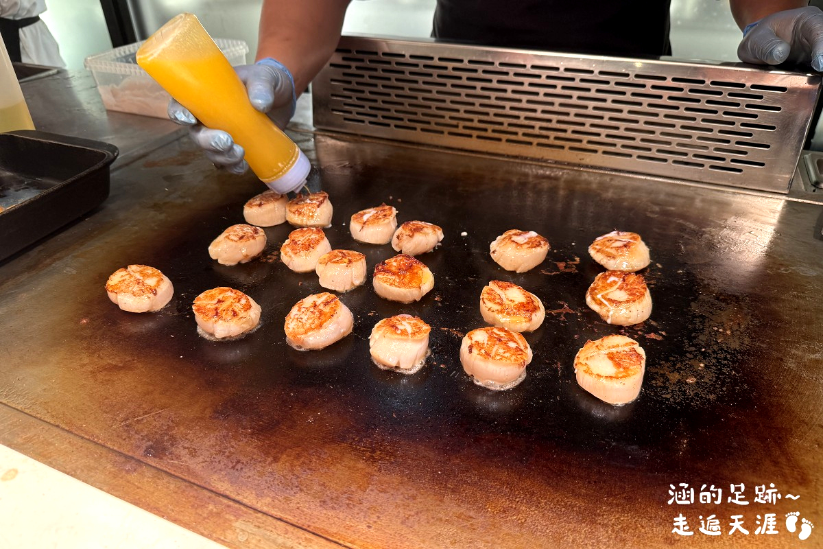 現煎奶油干貝是小涵無法抗拒的美食,平常吃鐵板燒餐廳也是這樣的大小,還只有一顆,這裡吃到飽,太划算了!