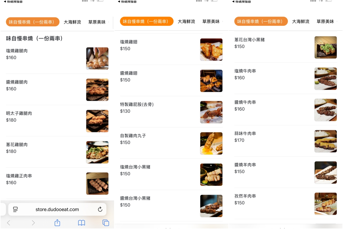 餐點選擇很多,光是串燒就有很多種,一份都有兩串。