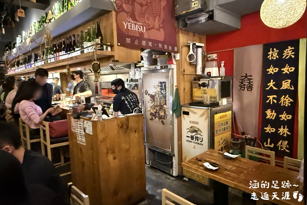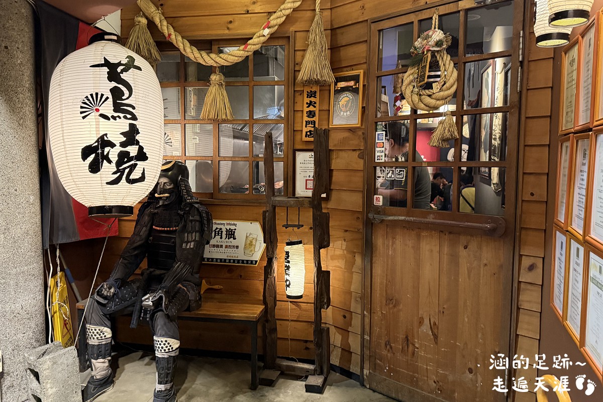 原木色的招牌和裝潢、日式燈籠、日本武士、注連繩,就好像來到日本。