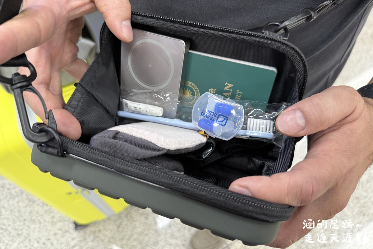 坐飛機需要的東西都可以放在這個斜背包裡,過海關時也可以快速的把護照拿出來。