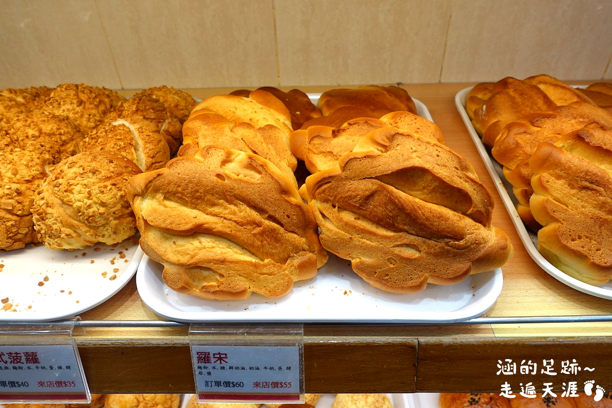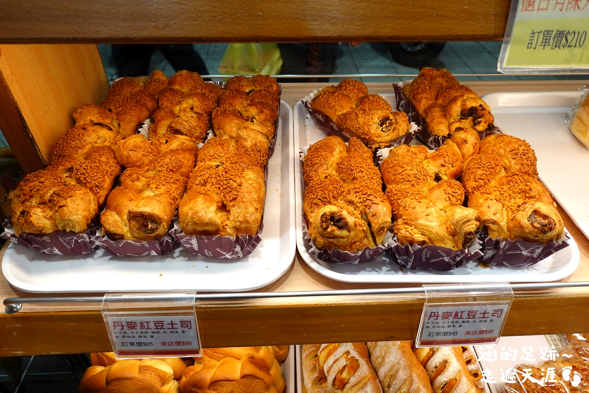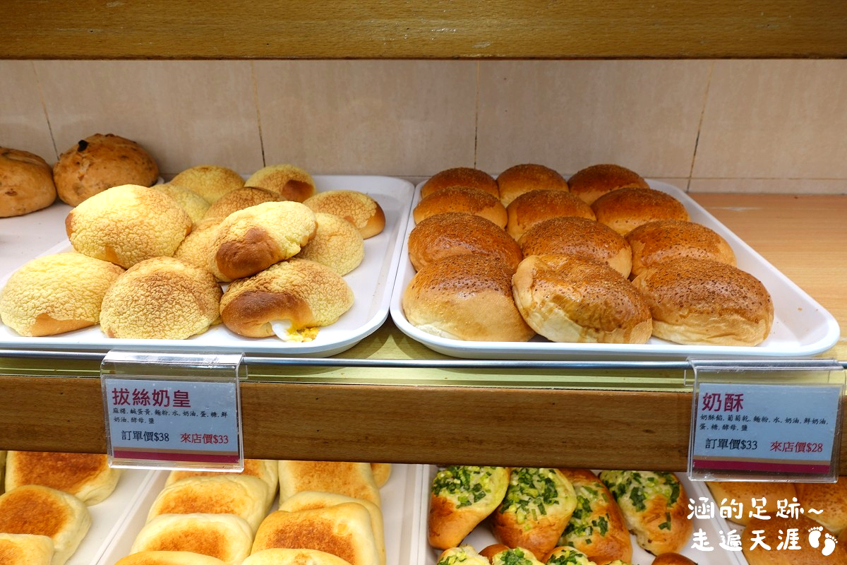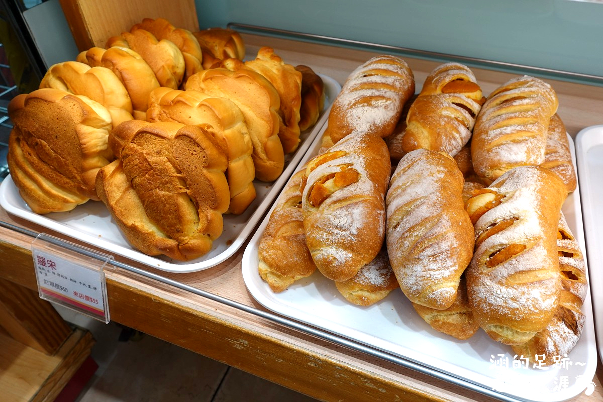 奕順軒羅東民權店有長長的麵包櫃,種類很多,台式麵包、歐式麵包,甜的、鹹的麵包通通都有,麵包價格介於$28~$55左右,吐司約$70~$90,相當平價。