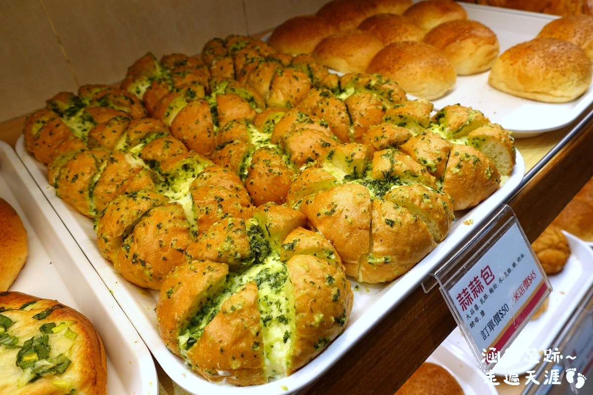 蒜蒜包很受歡迎,蒜味十足,中間是滿滿的乳酪,吃起來感覺會很胖,但小涵還是會忍不住買一下。